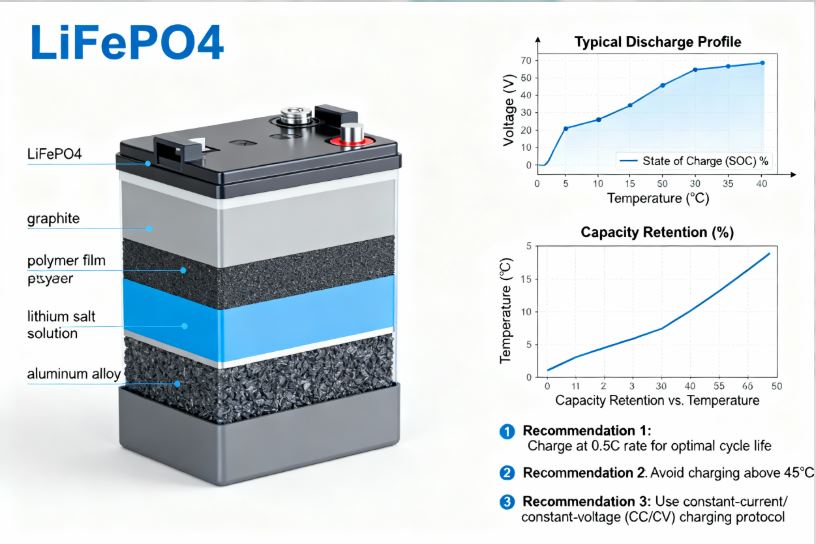 2. Для максимальної довговічності використовуйте 3,40-3,45 В для отримання терміну служби 15-22 роки, хоча й з втратою 10-15% доступної ємності.